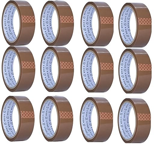 KYI & A Brown BOPP Packing Tape | 36 mm x 65 Meter | Carton Sealing Tape | Single Roll (Pack of 12, 50m)